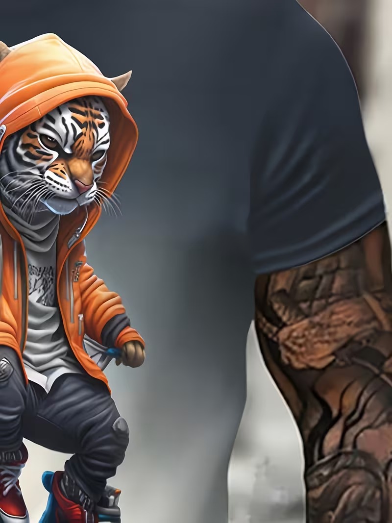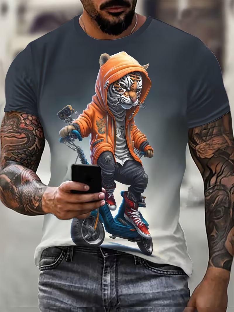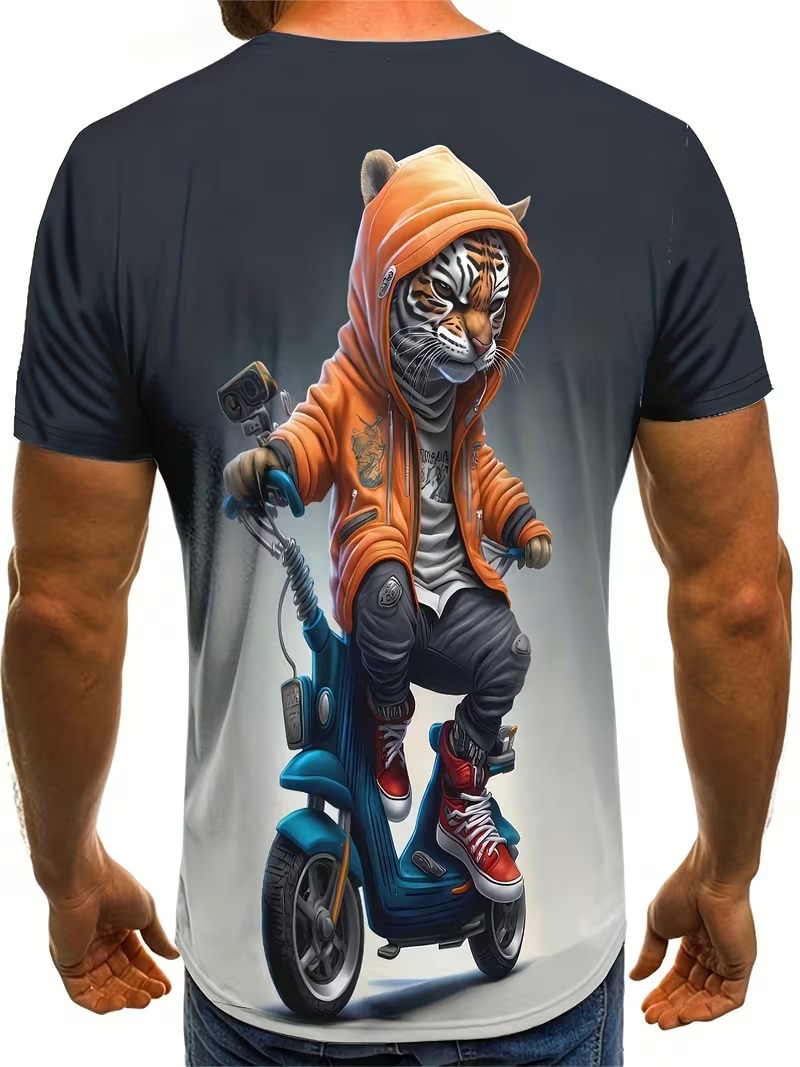 Men's large-sized fashionable t-shirt with 3D cartoon print. Ideal for casual sports wear. Elastic fabric, round neck, short sleeves. Perfect choice for summer. Large size.